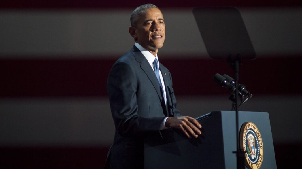 CHICAGO, IL – JANUARY 10: U.S. President Barack Obama speaks to supporters during his farewell speech at McCormick Place on January 10, 2017 in Chicago, Illinois. Obama addressed the nation in what is expected to be his last trip outside Washington as president. President-elect Donald Trump will be sworn in as the 45th president on January 20. (Photo by Darren Hauck/Getty Images)