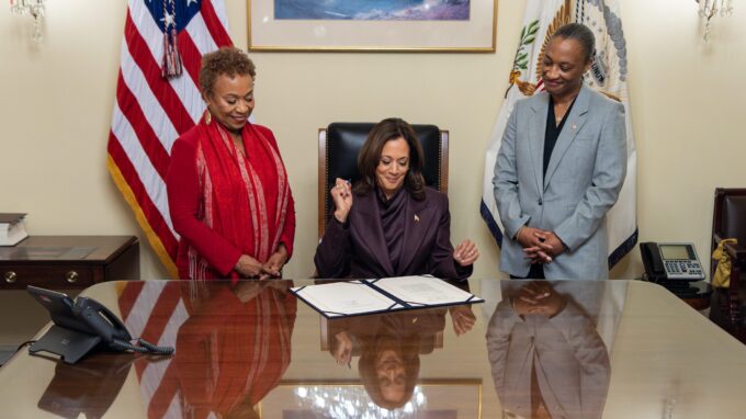 Harris’ signature instructed the United States Congress to posthumously award Chisholm, the first Black woman elected to Congress and first African American to run for president in a major party, with Congress’s highest civilian honor.
