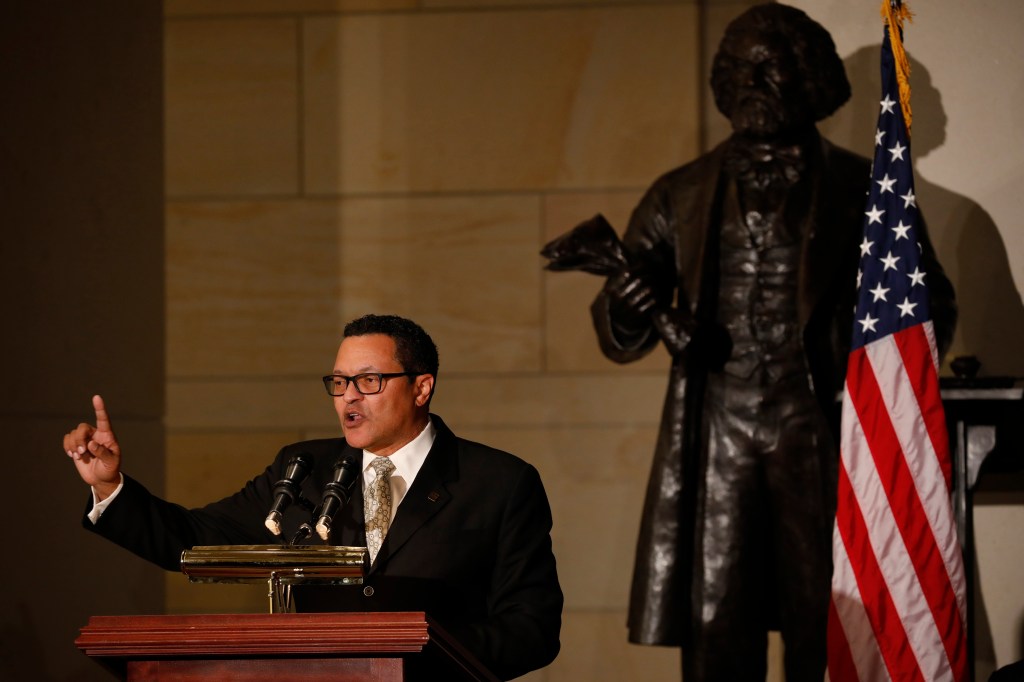 Ken Morris, a descendant of Frederick Douglass, speaks on Capitol Hill on Feb. 14, 2018, in Washington, D.C., at an event honoring the bicentennial of Frederick Douglass’ birth. (Photo by Aaron P. Bernstein/Getty Images)